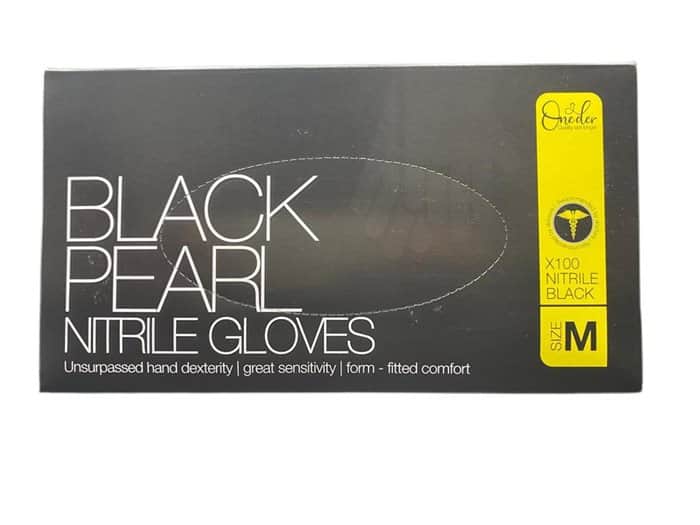 כפפות ניטריל (ללא אבקה) שחורות וחזקות במיוחד. מידה-M. (100 יח' בחבילה).